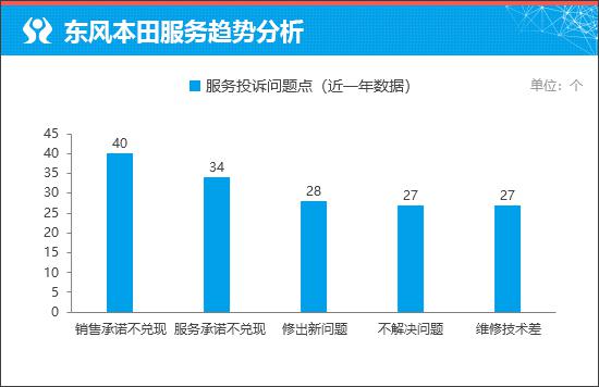从服务投诉的角度来看,“销售承诺不兑现”和“服务承诺不兑现”是业主对东风本田品牌投诉的服务问题。通过进一步分析,我们可以看到投诉仍然主要来自东风本田思域和东风本田 CR-V 车型。