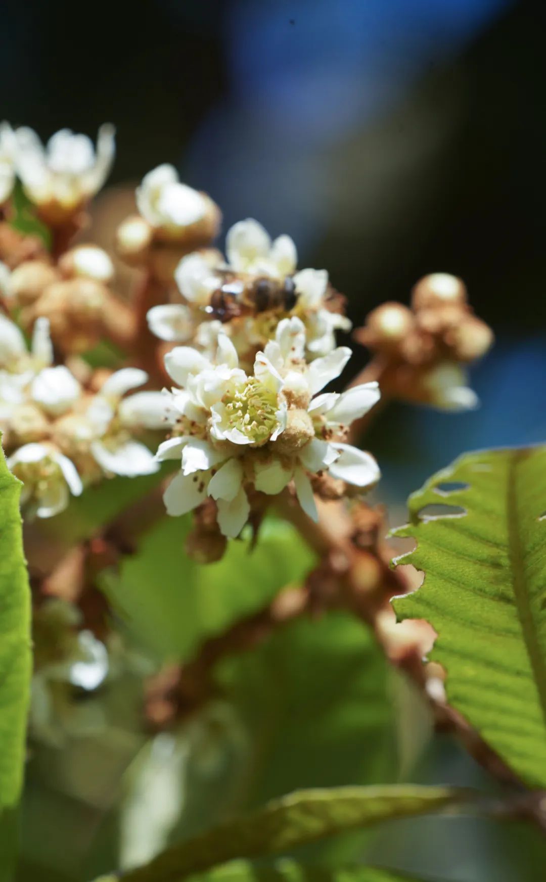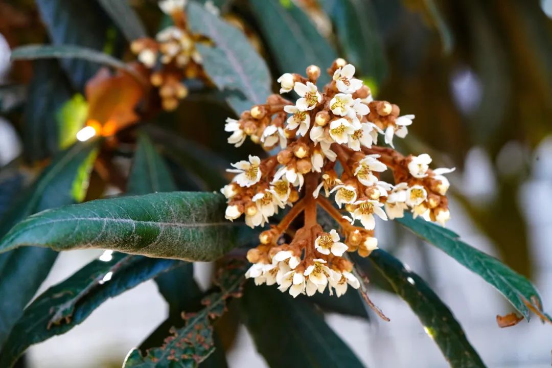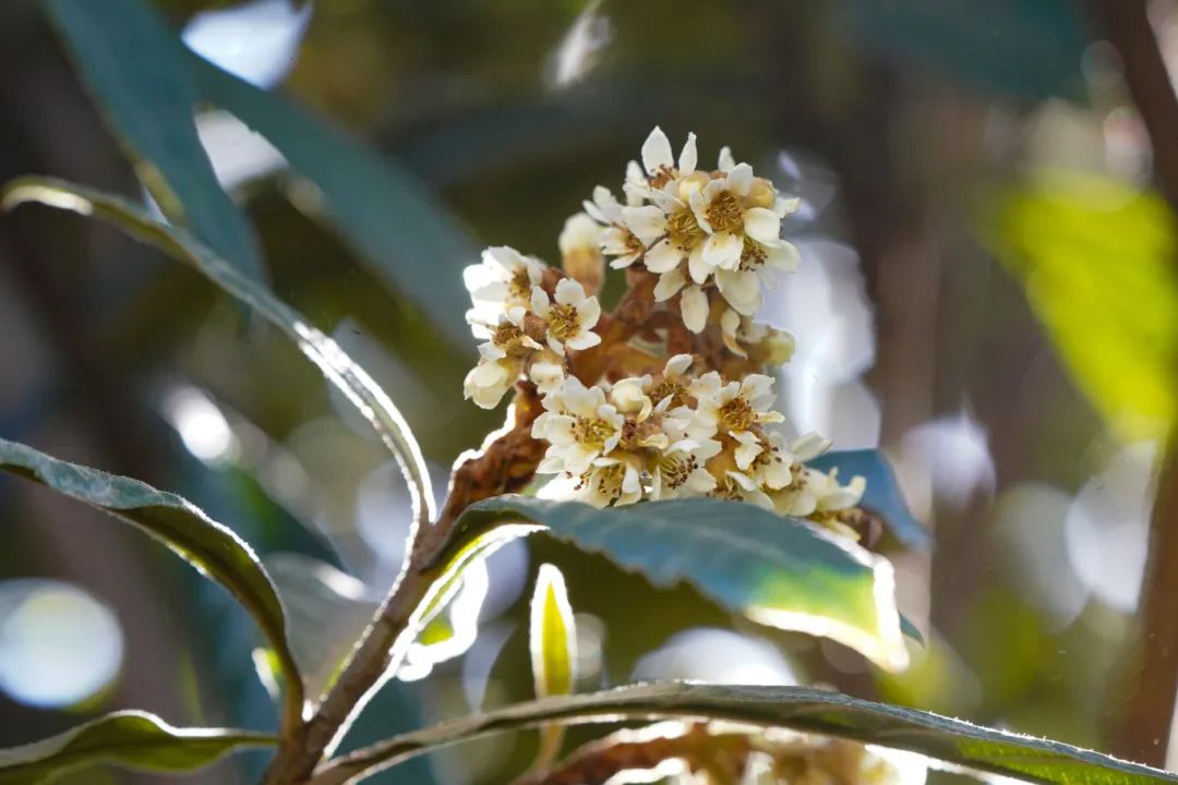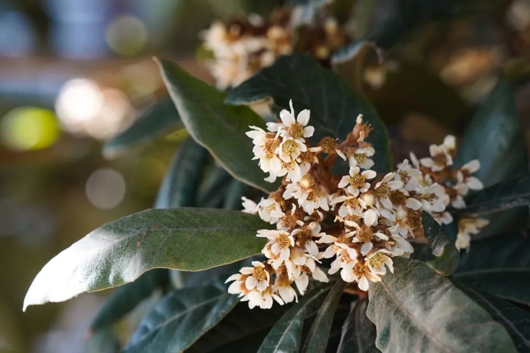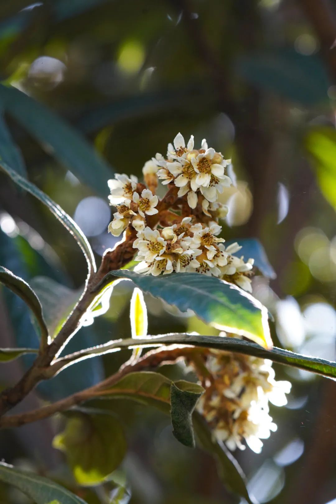 “一个春天没有放梅梢,枇杷花已经玉了。”南宋诗人洪咨邈用“崎岖不平”来形容枇杷花,真的很棒。在大自然中,花越小,越密。这种青白如玉的枇杷花,一旦开放,就浪漫地堆积起来,凑在一起闻闻。“淡淡的甜味和微微的清爽随着冷空气吸入鼻腔,深深的记忆瞬间被唤醒。是的,是枇杷膏的味道。”