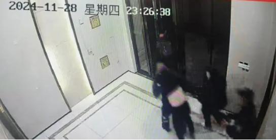 把女业主从疏散出口背到安全地带