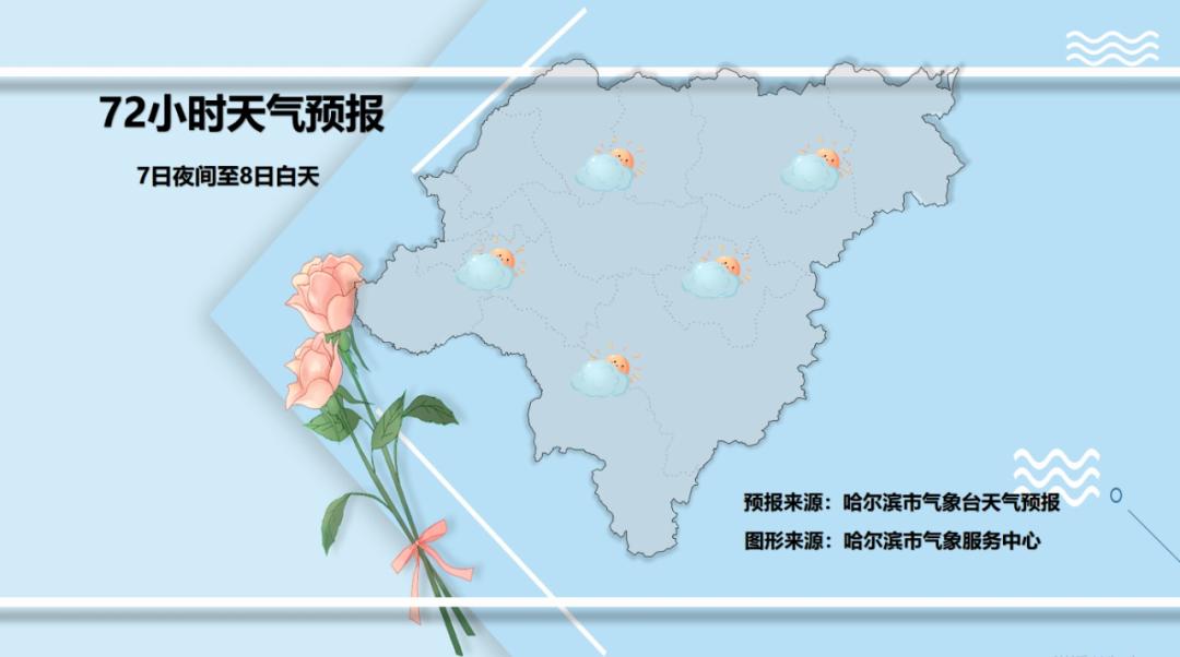 6日晚至7日白天:哈尔滨东部、佳木斯、双鸭山、七台河、鸡西、牡丹江东部阴天有雪,其他地区有时晴天多云。