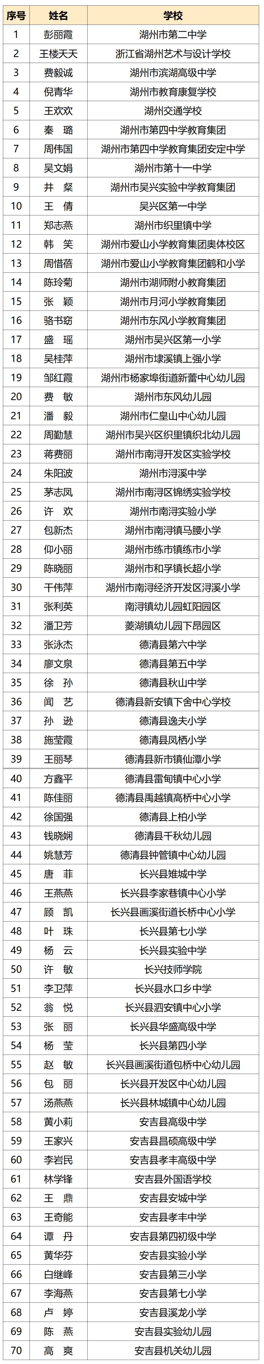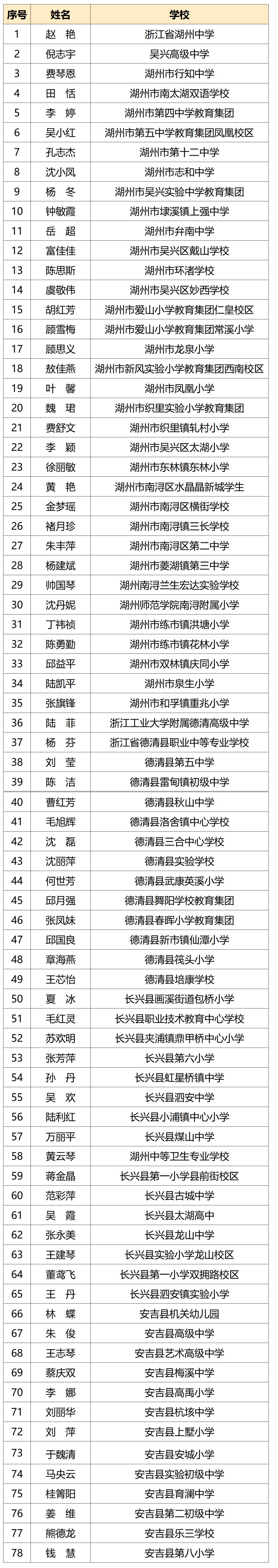 近日,湖州市2023学年德育工作优秀集体、德育工作者优秀、成长导师选树成果公示。27个集体和171名教师名单上有名。