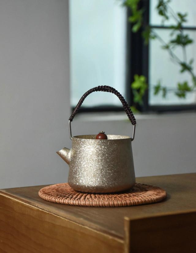 将仿古古代经典的提梁壶编织成双向平结,提梁不滑,端握舒适,极具古韵。