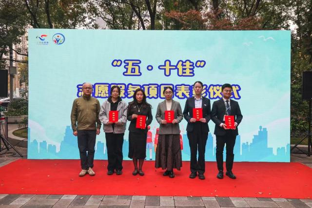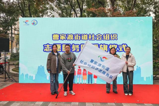 活动为获得2024 年度"五 · 十大“曹家渡街道志愿服务项目”的 5 名字代表颁发证书,并为曹家渡街道社会组织志愿服务队授旗,明确了社会组织与志愿服务的紧密联系、协同发展的目标,增强了动力。