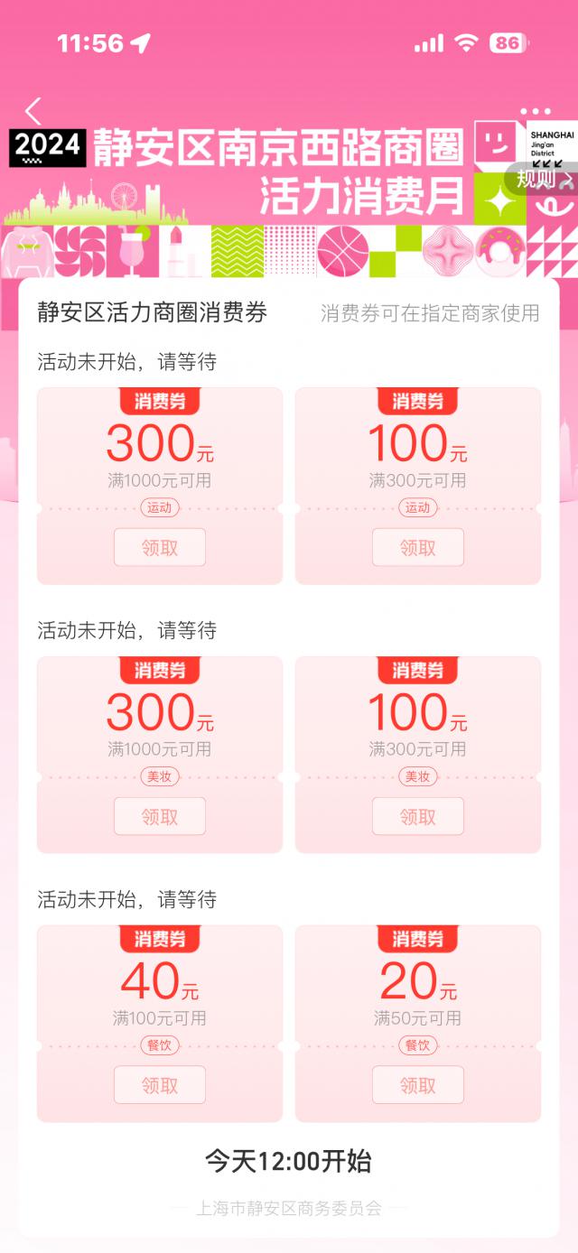 中午12点,第四轮2024上海国际体育潮流文化节静安商圈消费券开抢!