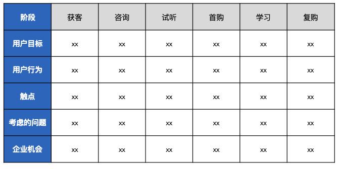 根据你目前负责的产品,填写下表。阶段代表用户生命周期的每个阶段,比如B端,一般可以分为:售前、售中、售后阶段。