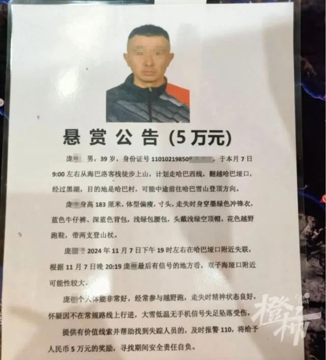 男子雪山失联20多天,爸爸悬赏5万寻人!指导称之为“硬”,救援多日未果。