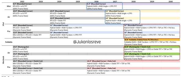 【CNMO 科技新闻】近日,苹果显示屏路线图在网上爆炸,透露苹果未来可能会在产品中大幅升级屏幕。许多新产品可能会从 2026 从年开始逐渐过渡到 OLED 屏幕,给用户带来更高的显示质量,甚至包括 iPad mini。