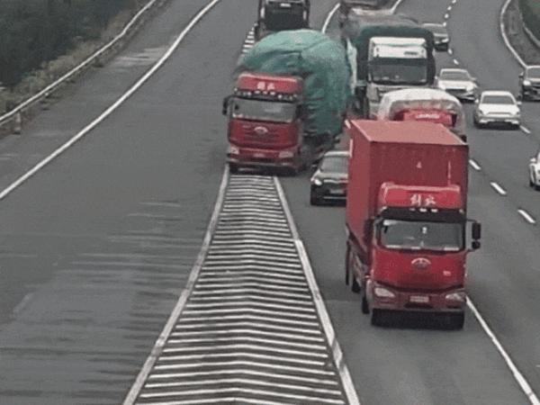 其中,在第三车道行驶的小货车只有紧急刹车才能停下来;然而,第四车道上的一辆大卡车不得不向右猛击,急刹车。直到轮胎冒出白烟,它才勉强绕过。现场充满了危险。幸运的是,没有造成任何事故。