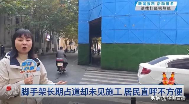 长期搭建脚手架占用道路不施工!武汉市民吐槽:堵得一塌糊涂