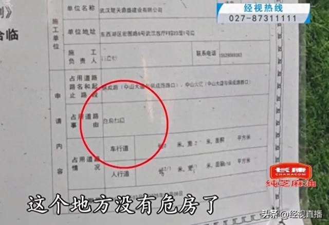 为什么脚手架一直存在?记者拨打了《武汉市临时占用市政道路许可证》上公布的电话号码。根据对方提供的电话号码,记者联系了危险建筑的所有者。
