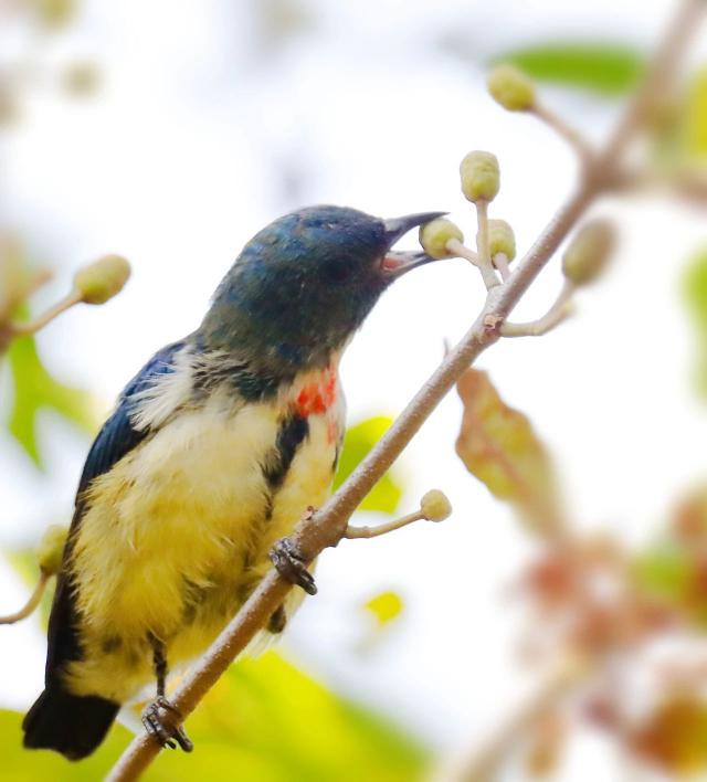 珠江公园,紫薇树上寻食的红胸啄花鸟 图源 @珠江公园广州