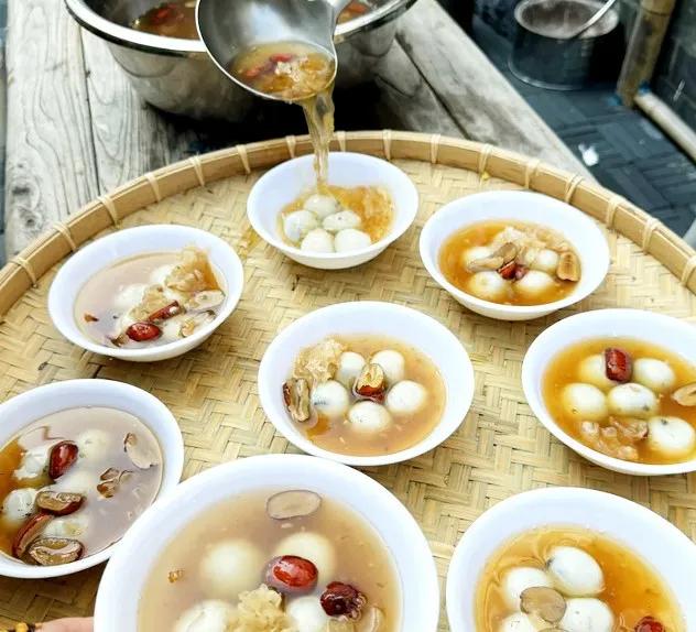 甜饮料也是在顾客面前制作的,像石榴汁一样,是用当季的石榴榨出来的,芋泥圆、冰粉也是手工制作的。