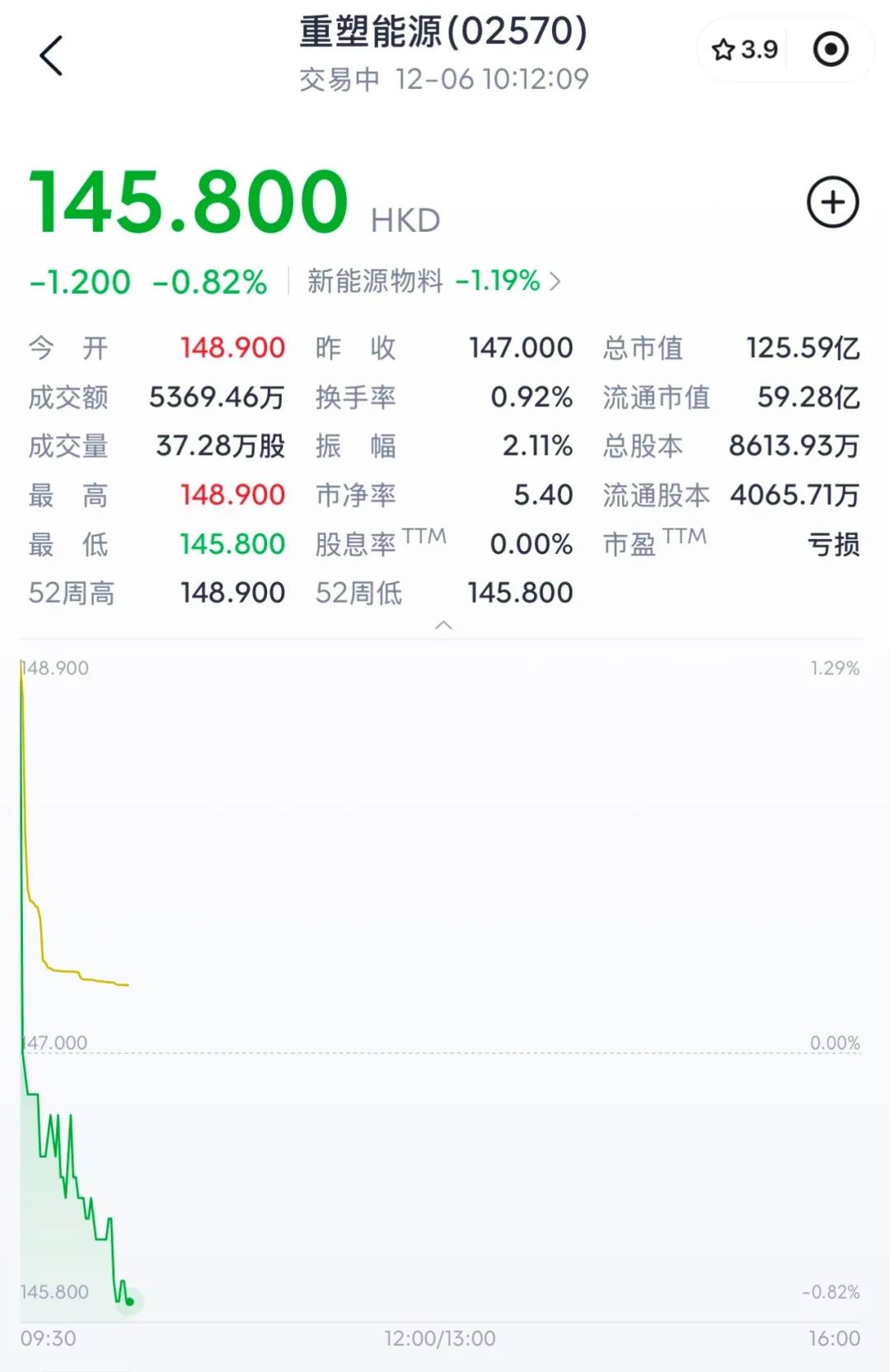 12月6日,上海重塑能源集团有限公司(以下简称重塑能源)成功登陆港交所,发行价为147港元/股,开盘价为148.9港元/股,较发行价上涨1.29%,随后股价下跌至10。:12,微跌至145.8港元/股,较发行价格下降0.8%。