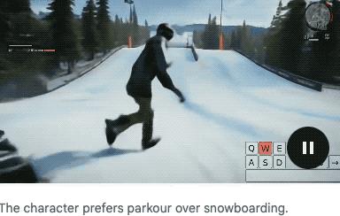 比如下面这个,本来是让画面里的小哥哥滑雪,结果, AI 把他变成了跑酷。