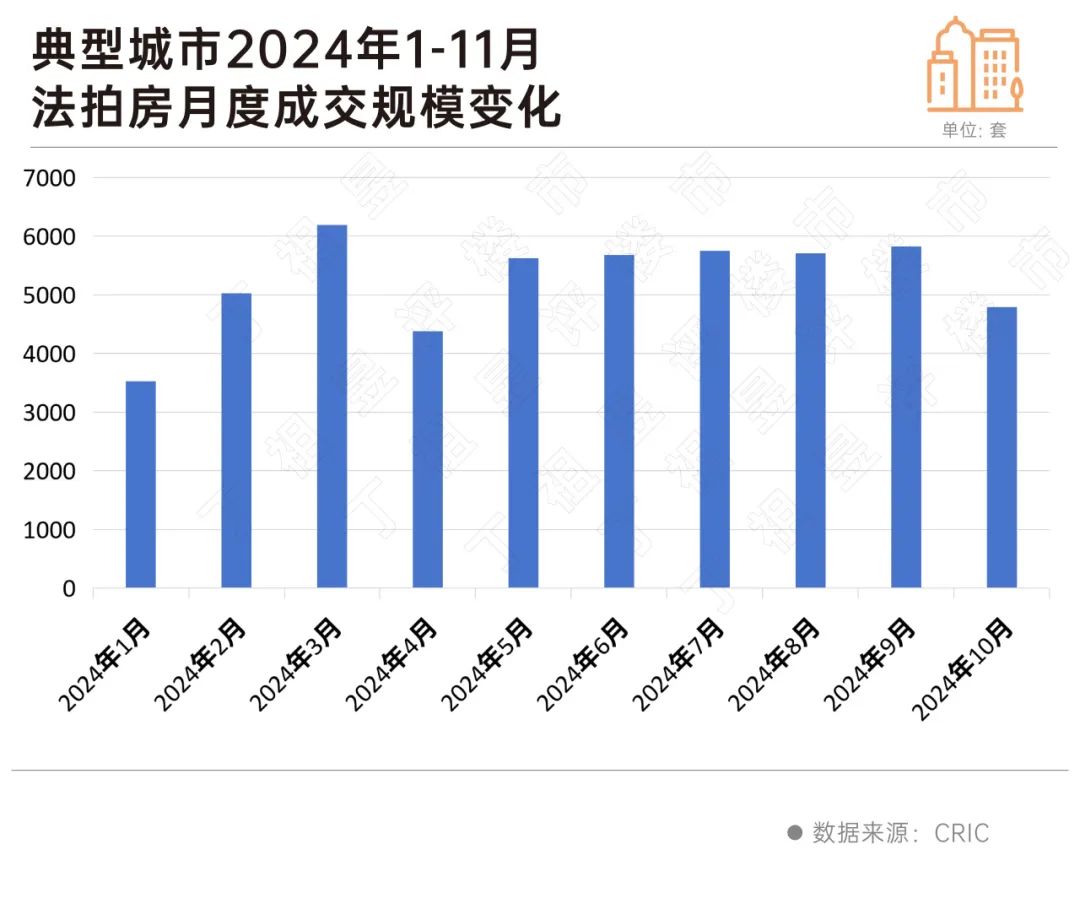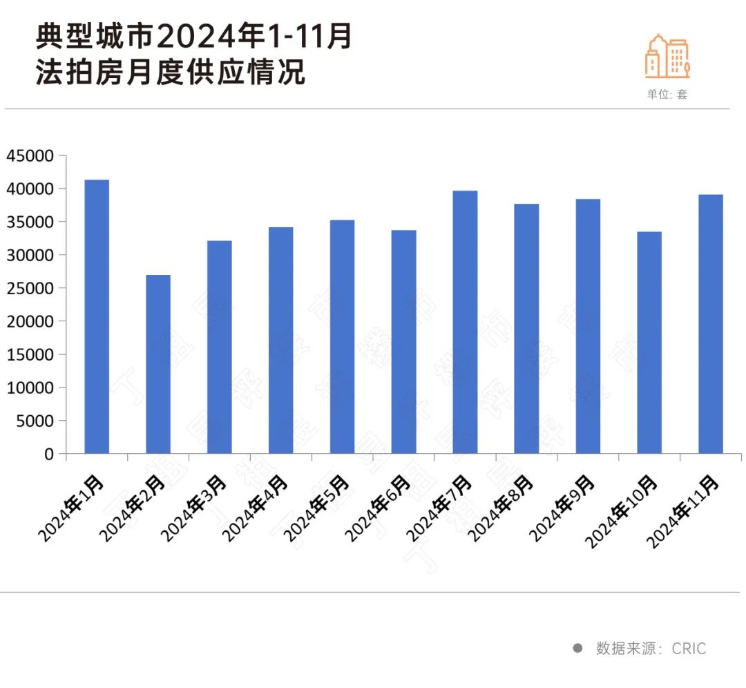 根据CRIC监测数据,11月份新增了3.9万件典型城市法拍房,环比增长17%。