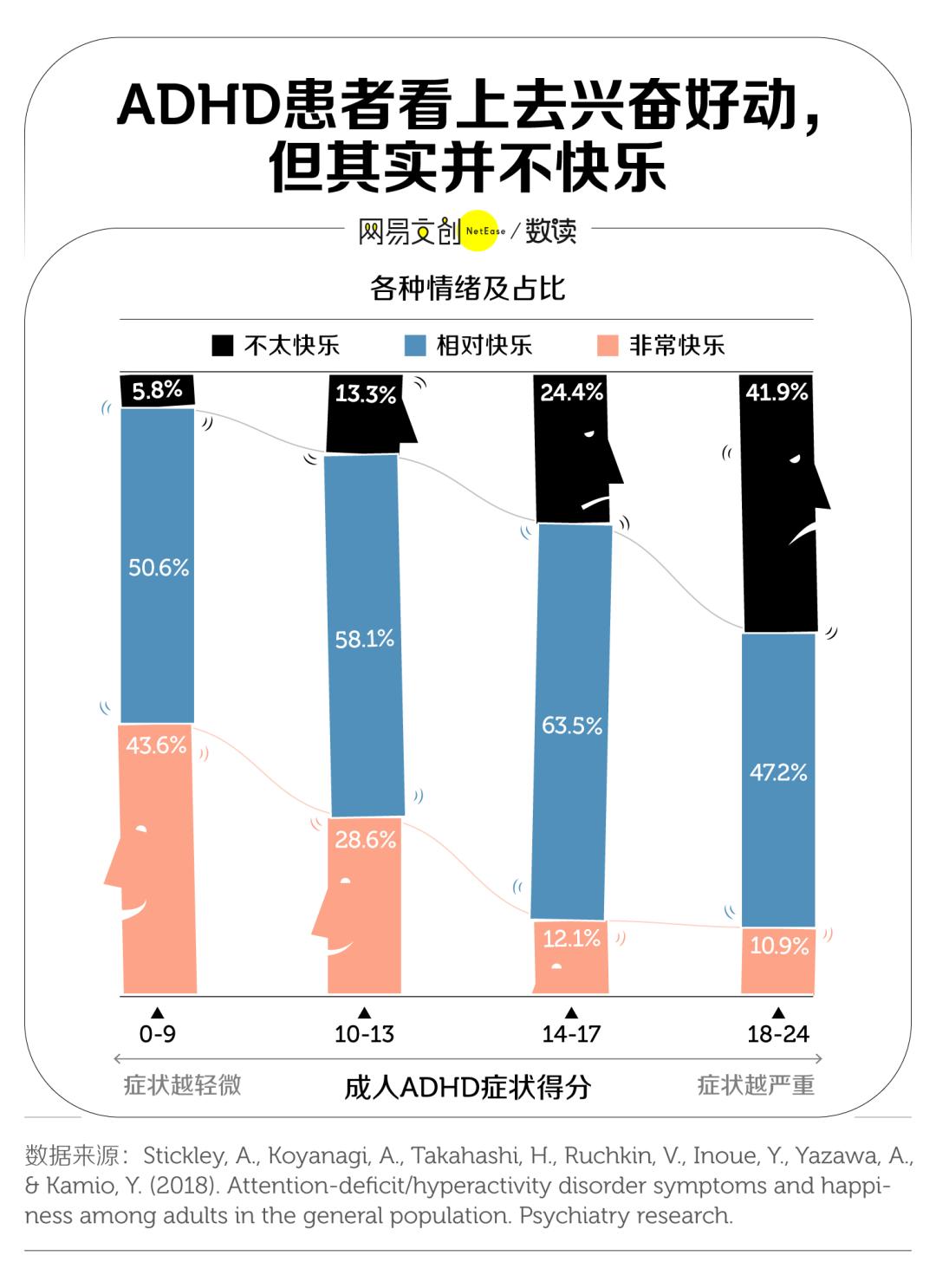 因此,ADHD 病人看上去也许很兴奋,但是并不快乐。