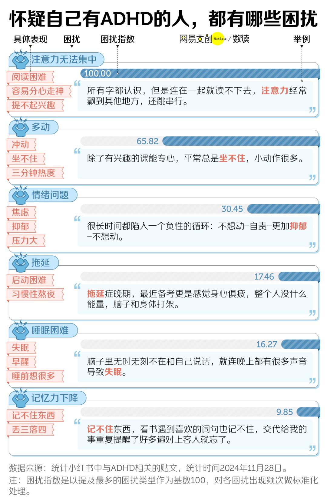 现在,仍然有很多年轻人自我诊断。 ADHD,无论是 I 人还是 E 人类,也许自称“A 人类”。小红书上有关系 ADHD 主题浏览量达到8000万,有人知道。 ADHD 之后,仿佛整个人生都得到了解释:原来自己的拖延和注意力不集中,不是因为懒惰和疲惫,而是因为可能“生病”。