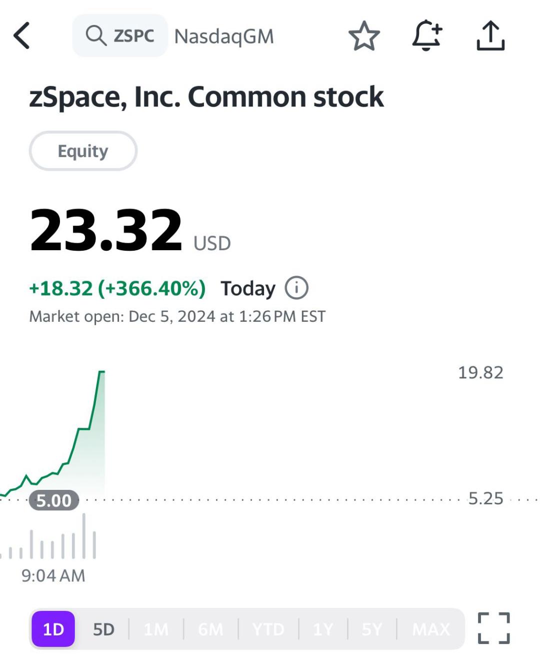 美国硅谷zSpace(ZSPC)今天公司上市,首日股价飙升 这一表现表明,380%的市场对其技术创新和商业潜力的高度认可。