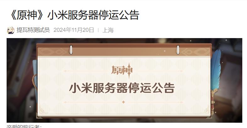 《原神》小米渠道服务发布公告:11月20日关闭充值入口和新用户注册功能,明年1月20日停止使用米服的玩家可以将数据转移到官方服务。渠道服务关闭无非是收入无法满足双方的需求,这也被外界视为“原神要凉了”的信号。