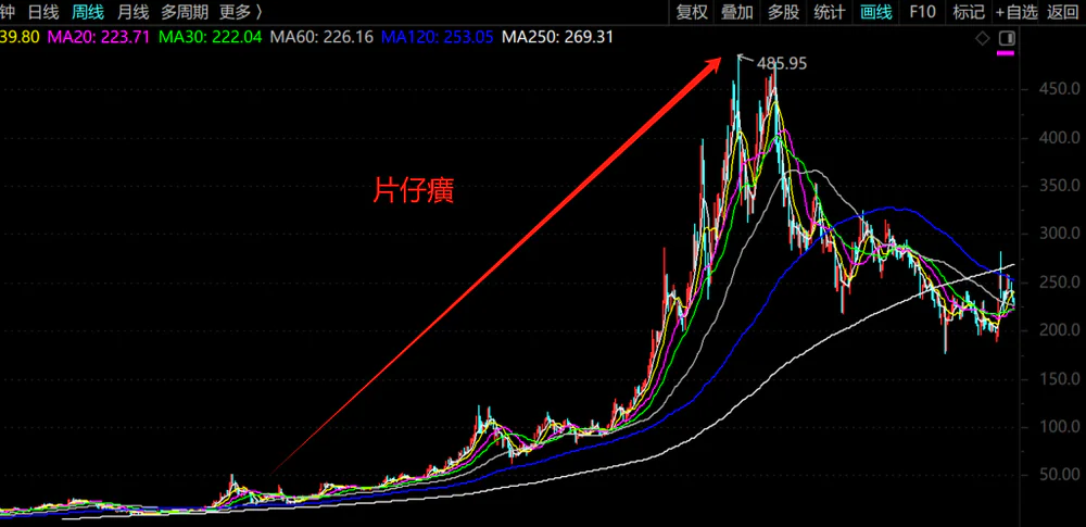 然而,随着宏观经济的疲软和中产阶级消费力的下降,具有消费属性的公司片仔癀的收入增长率开始下降,公司的股价也从高位减少了一半。