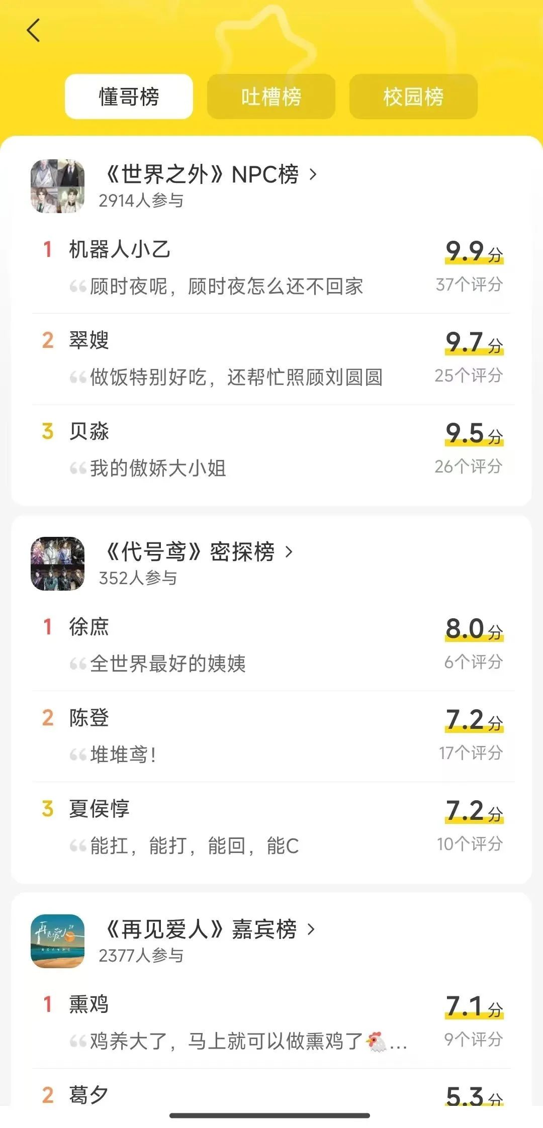 AI蓝媒体注意到,目前“网易蜜蜂”在广场一栏的“了解哥榜”中排名靠前的是“世界之外”NPC榜单。、《代号鸢》暗探榜,前者是网易制作的无限流言情手游,后者是网易制作的古代女性向剧情卡游。显然,“网易蜜蜂”不仅会像小红书一样引入更多合适的游戏互动内容,从而进一步回馈自己的游戏主跑道。