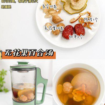 3、✅无花果百合汤 配料准备:雪梨干 15 克、百合 10 克、无花果 20 克、陈皮 3 克、大枣 2 个