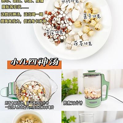 4、✅小儿四神汤 1 岁以上喝 (健脾开胃) 配料准备:山药 10 克、莲子 10 克、芡实 10 克、茯苓 10 克