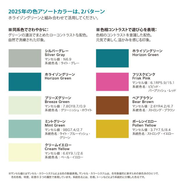 日本流行色协会公布的 2025 年度色彩继续传递治愈、平静和希望。