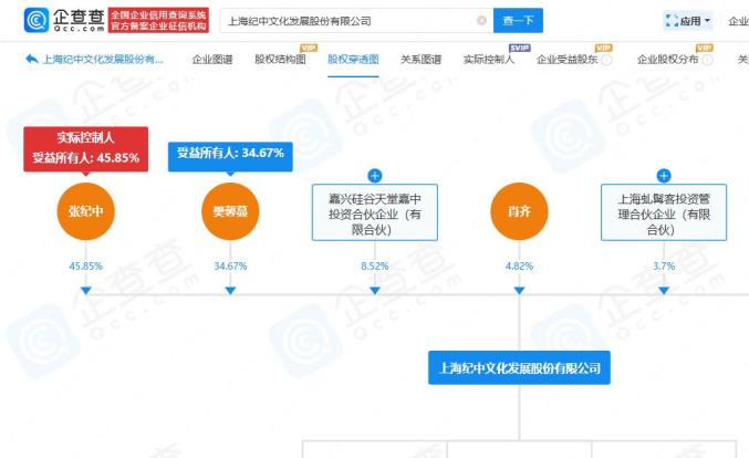 根据天空调查数据,该公司由张纪中、樊馨蔓、嘉兴硅谷天堂嘉中投资合伙企业(有限合伙)共同持有,今年10月已宣布破产审查。