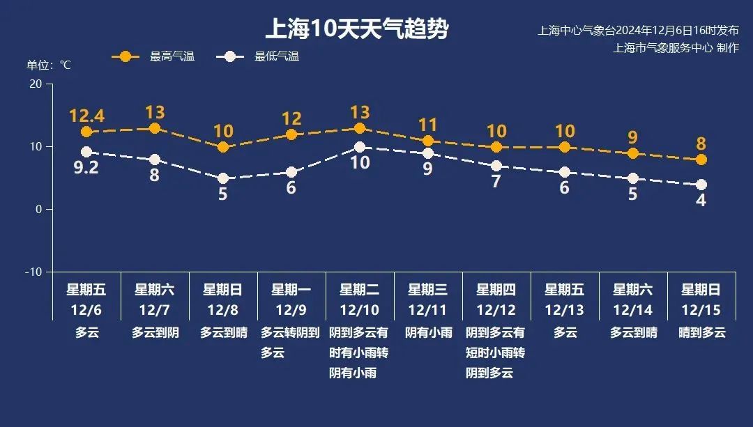 周日申城天气晴朗,但在冷空气的影响下,气温会降到最近的低点,一整天只有5~10℃。西北风带来冬天的体验,所以记得多穿点。