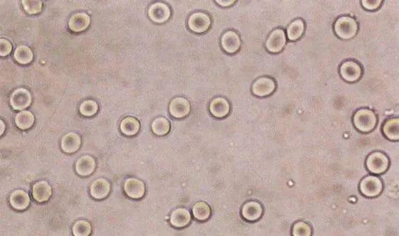 如下图所示,在光学显微镜下,红细胞形态基本正常。