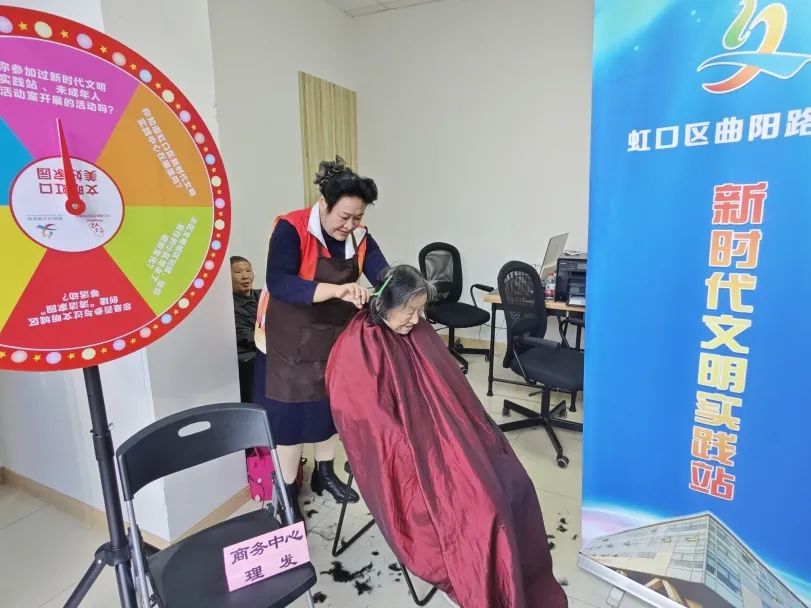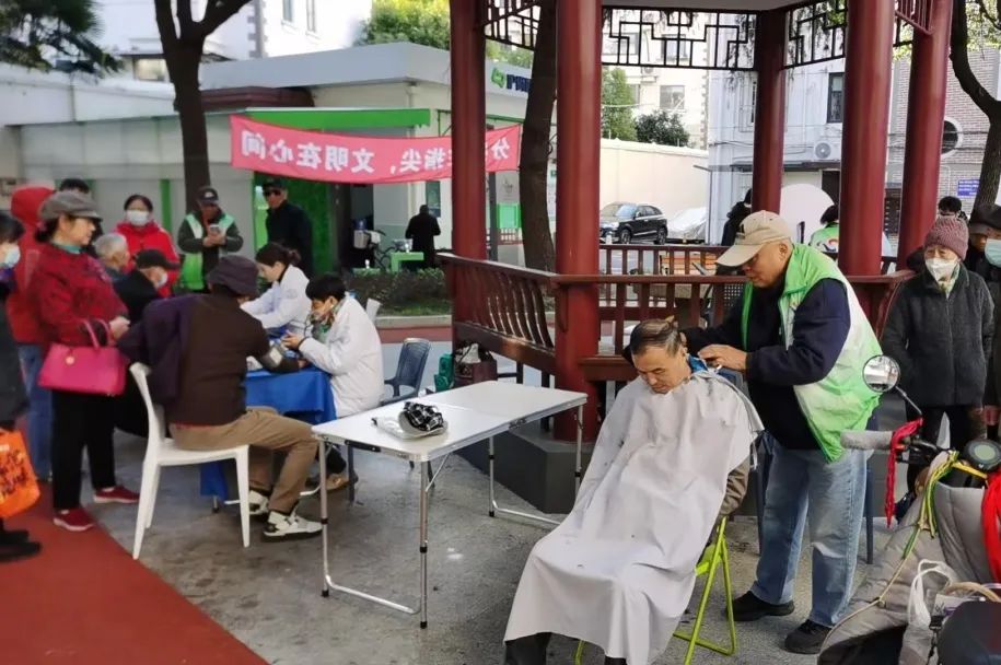 ▲新时代文明实践站提篮桥居民区“文明实践小虹车” 便民活动