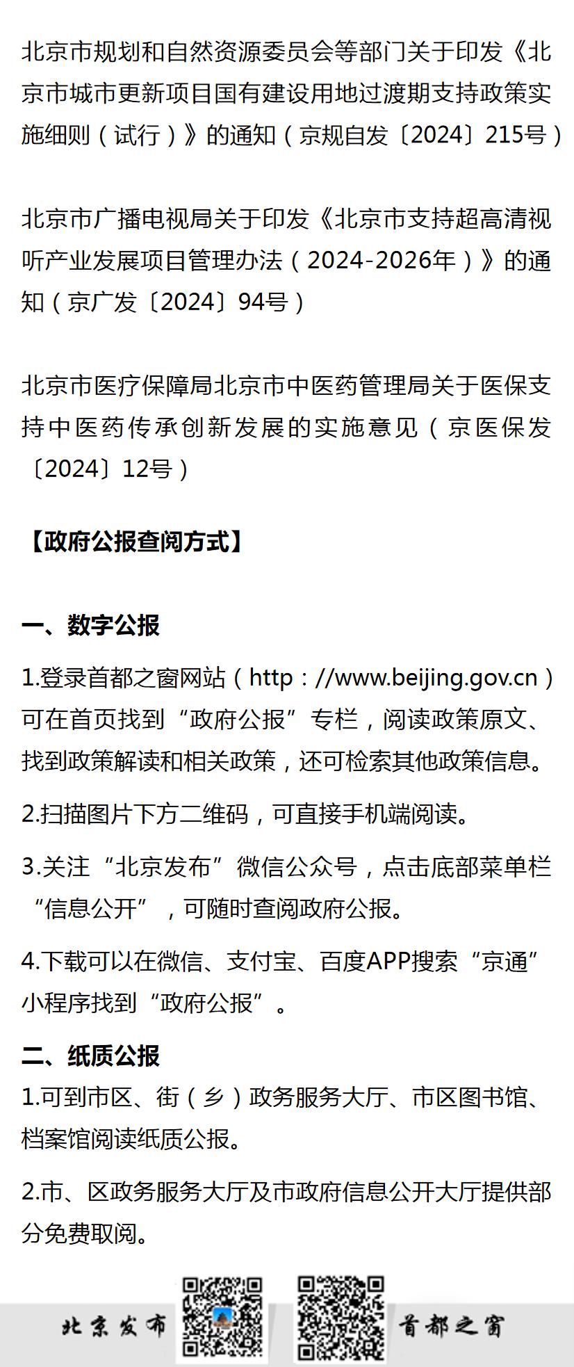 《北京市人民政府公报》是国家出台政策的权威媒体。有最新的政府规章制度和规范性文件,市委、市政府联合出台的政策等。,以及各部门出台的行业发展规划、行政审批流程等相关政策,以及养老、医疗、教育等民生政策...如何查看政府公报?戳视频了解!⬇️⬇️