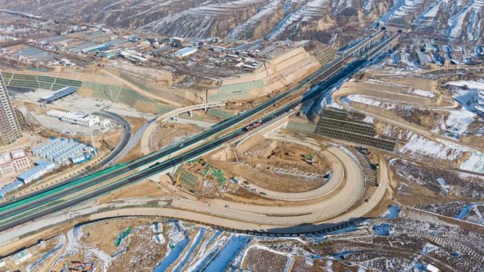 兰州市七里河区G2201兰州南绕城高速黄峪镇进出口新建工程施工现场,11月28日拍摄。新华社记者 郎兵兵 摄