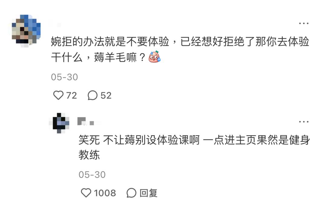 社会媒体上,会员和教练因立场不同而偶有爆发;而围绕体验与销售的斗智斗勇,仍在线下健身房继续上演。