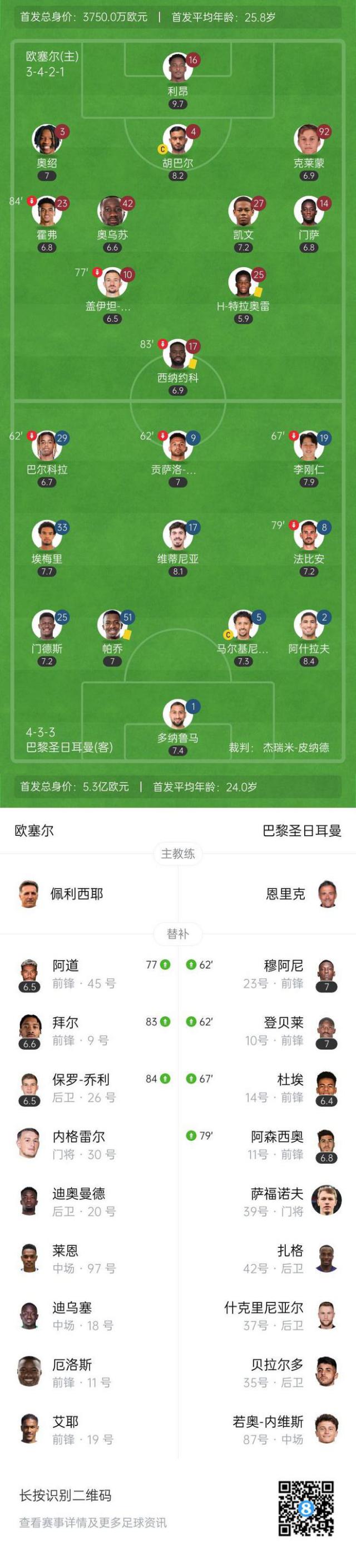 后半场补时 4 几分钟。最终,整场比赛结束,巴黎 0-0 客平欧塞尔。