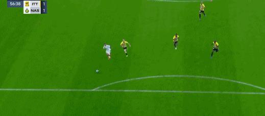 第 80 分钟,甘纳姆禁区前沿直塞,马内插入远角,被吉达联合后卫救出门线!
