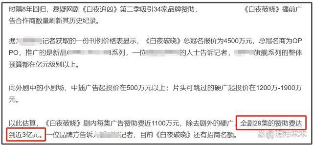 《白夜 当时广告投资状况良好,打破了播出平台的多项记录,这也证明了这一点。 IP 吸金能力强,平台可以靠它赚钱。潘粤明在接受采访时也透露了这部剧是否意味着第三季取决于平台。目前,从 从招商情况和开放式结局来看,很有可能会有第三季。但是从目前观众的反馈来看,已经不想拍第三部了。