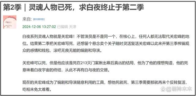 虽然《白夜 2播出后,由于剧情逻辑不清晰、配角太多、主角团被降智等诸多争议,出现了高开低走的趋势。然而,仍然有忠实的观众坚持追逐第一季。他们只希望男主角关宏峰能摆脱委屈,走出夜晚,迎接黎明。没想到,黎明没来,关宏峰下线了。