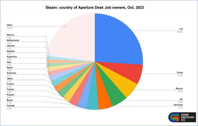 截至 2023 年 10 月份 Steam Deck 销售分布(根据国家和地区)