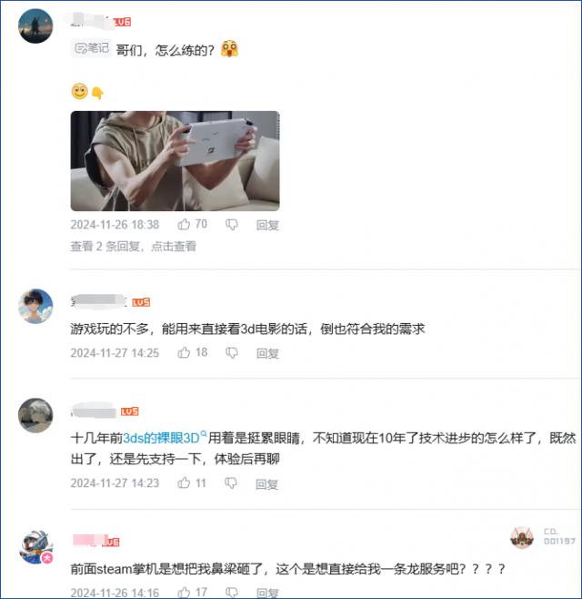 3D One 手持发布后,最新的评论是两极分化。吐槽点主要集中在较大的尺寸和较重的机身上,很难长时间手持玩游戏;但是也有网友对裸眼 3D 期待屏幕的效果。