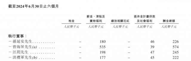2024年优乐赛董事会成员 年上半年工资最高的是新入职的曾海屏,工资总额达到 57.4 而孙延安、汪玥和洪礼军的工资总额只有一万元。 22.6 万元、24.5 万元及 22.2 万元。