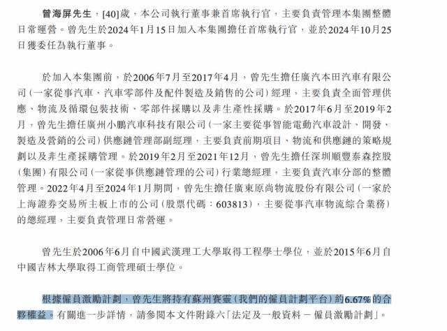 曾海屏在广汽本田做了接近广汽本田的工作。 11 2008年,他还获得了中国吉林大学工商管理硕士学位。2017年 年至 2021 多年来,他一直在小鹏汽车、顺丰旗下的泰森控股集团工作,从事供应链业务。