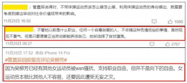 一位特别的“评价者”直到她的评论区迎来。——管晨辰,和吴柳芳一样,她也是一名退伍体操运动员。
