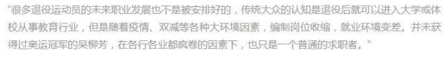 事实上,吴柳芳的“擦边事件”让公众看到并关注了一个群体。——退役运动员。