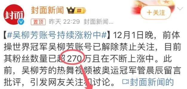 除热度外,很多官方媒体也在报道“吴柳芳涨粉”事件。