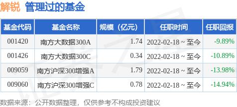 南方大数据100A基金经理变更:增聘解锐为基金经理