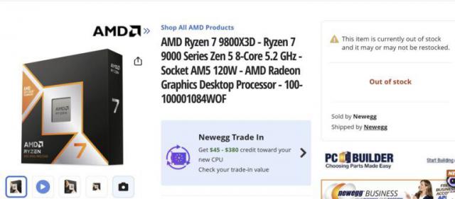 IT 世界援引海外消息,AMD 的锐龙 7 9800X3D Cpu供不应求,包括亚马逊、新蛋、百思买在内的主流零售平台已经缺货,只有一些小零售商或实体店可能还有少量库存。
