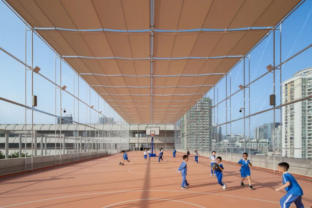 和它一样,不一样⼀一所位于深圳荔园外国语小学的同期存量建筑改造项目,它拥有一所深圳荔园外国语小学。⼀一个独特的“屋顶操场”。