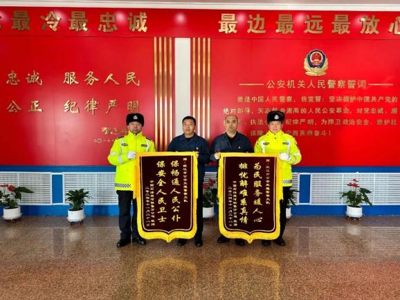 最近,中国石油黑河销售分公司将印上“为人民服务暖心”的印记 解决困难就是真情”、"保证人民公仆的畅通 “保安人民卫士”的两面横幅交给警察,表示对嫩江警察工作的肯定和赞扬。